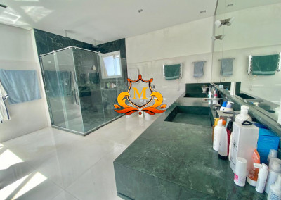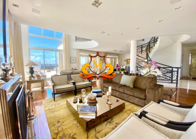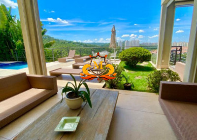 Vende Belíssima Casa Clean em Alphaville Tamboré (Sem Mobília), toda Automatizada, 5 Suítes repleta de armários, Área Terreno: 1.000,00 m², Área Construção: 1.000,00 m², 5 Suítes sendo a Suíte Máster com varanda, Banheiro com Banheira e Hidromassagem, Teto Solar, Espelhos, Box, Closet enorme, Piso de madeira, Sala com 5 ambientes com vista para Mata, Porta de entrada Pé direito duplo, Escada em Mármore, Sala com Pé direito duplo, Sala de Estar com Lareira a Gás, Sala de Jantar, Sala de TV, Lavabo, Home Office, Sala de Cinema com Home Theater, Telão, Adega Climatizada, Copa, Cozinha e Dispensa repleta de armários, Varandas, 3 Dependência de Funcionários com Banheiro, área de Serviço, Depósito, Espaço Gourmet integrados com todos os ambientes com Vista para Mata, Churrasqueira, Coifa, Forno de Pizza, Home Theater, Adega Climatizada, Sala de Jogos e TV, área de Fogo de Chão, Piscina retangular com Prainha e Cascata, os ambientes do imóvel são todos automatizados, 6 Vagas de Garagem sendo 3 Cobertos e 3 Descobertos.