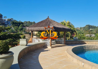 - Piscina com raia de 20,00 metros, Sistema de irrigação, Fonte, belíssima vista para o condomínio, 6 Vagas de Garagem sendo, 3 Vagas Cobertas e 3 Vagas Descobertos,