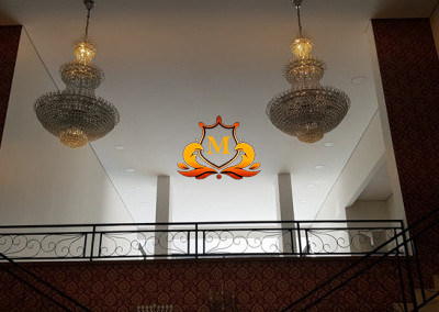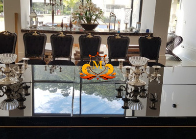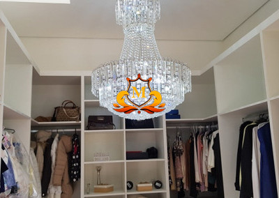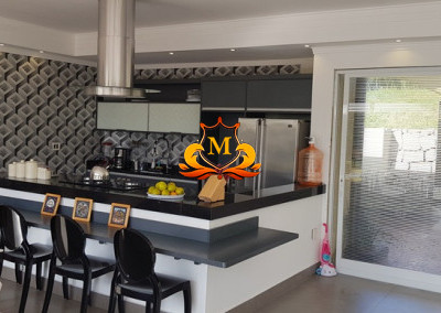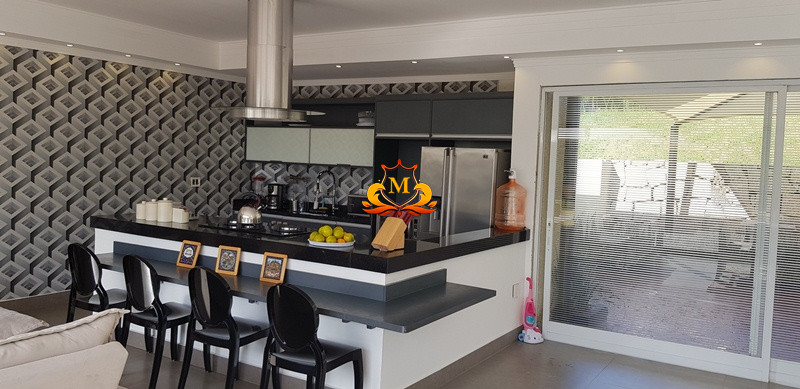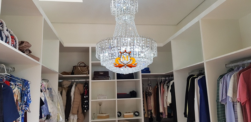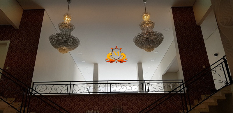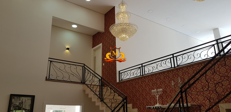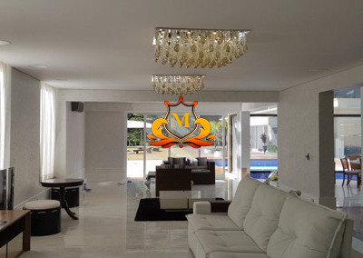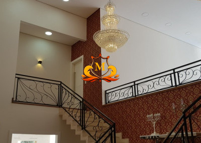 - Hall de Entrada com revestimento em cerâmica 3D e Porta com Pé direito duplo, 1 Lustre de Cristal no Hall de Entrada e 2 Lustres de Cristal entre as 2 escadas interligando o piso superior, Escritório completo de armários, Lavabo com bancadas em mármore,