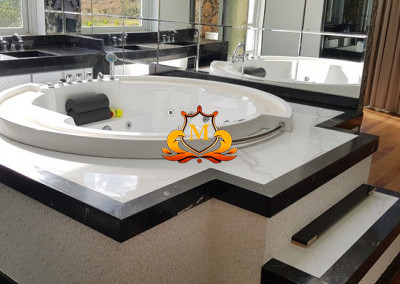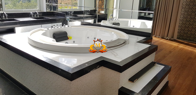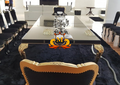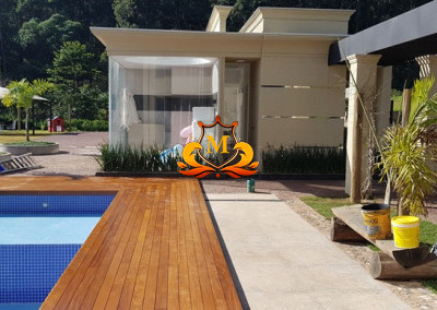 - 4 Suítes, repleta de armários sendo a Suíte Master com Lustre de Cristal, cama com detalhes folheados a ouro, Closet, Pisos salas com assoalho de madeira Tábua Corrida e salas com em Mármores, Varanda com vista para área de Lazer, Ar-Condicionado, Cortinas, Lustres, Hidromassagem de última geração, Banheiro Senhor & Senhora com 2 Duchas Vertical e Cascata Rose Gold, 2 Vasos sanitários Masc. e Fem,