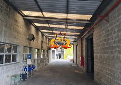- Características do Galpão: Construção em Colunas em concreto, fechamento nas laterais com bloco de concreto e partes em veneziana translucida, Telhado de cobertura do Tipo Shed e Telhado de duas aguas, estrutura de treliças metálicas, Vestiários, Capacidade de piso: 5 Ton. /m², Zoneamento ZUP 1, Sistema de Câmeras e Alarmes,