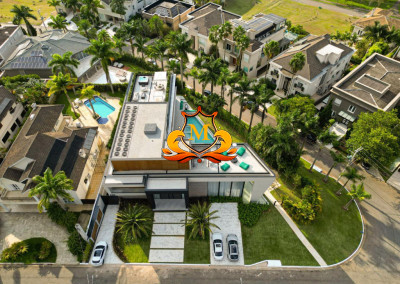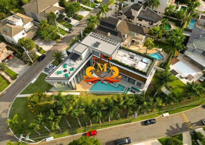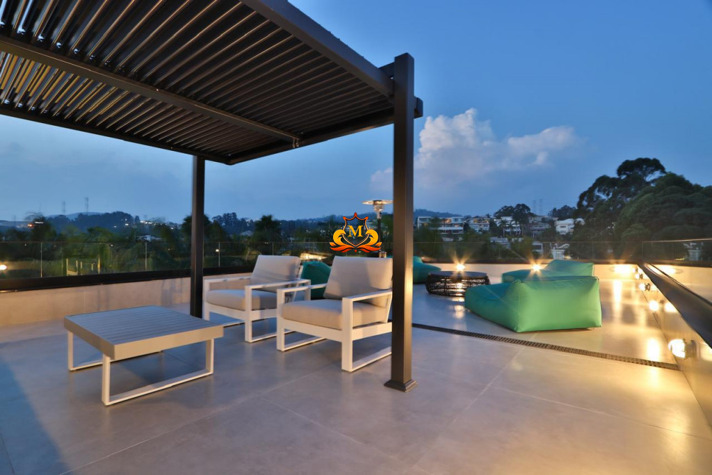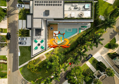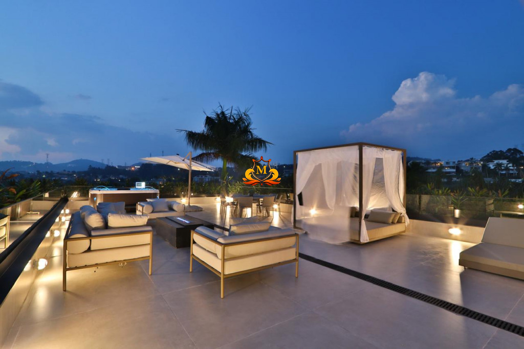 - Mansão Cinematografia de esquina na área mais nobre do Condomínio no Tamboré 02 cujo projeto conceituado e moderno oferece uma vista espetacular do seu RooMop com Área de 485,78 m², contendo um Bar totalmente equipado e completo para seu momento de lazer,