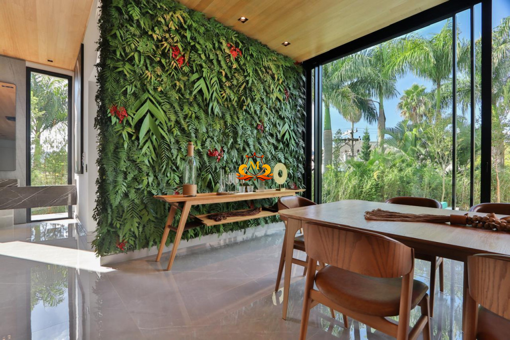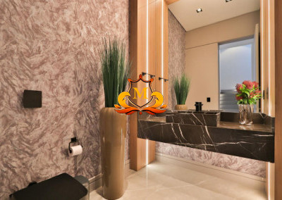 - Área de lazer única, com um projeto arrojado de paisagismo, com sistema de irrigação e iluminação atomizada, integrada com todos os ambientes da área social, fazendo com que o imóvel tenha uma total privacidade em sua Piscina, SPA, Fogo de chão, Sauna, Gourmet e Salas,