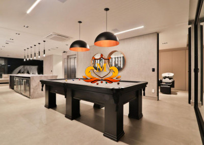 - Cinema com tela de 315” Polegadas e sistema de som 7.1, equipado com Poltronas elétricas esZlo Sala VIP individualizadas para 18 pessoas com bandeja, USB e porta copos, além de um lindo e moderno projeto de marcenaria e iluminação,