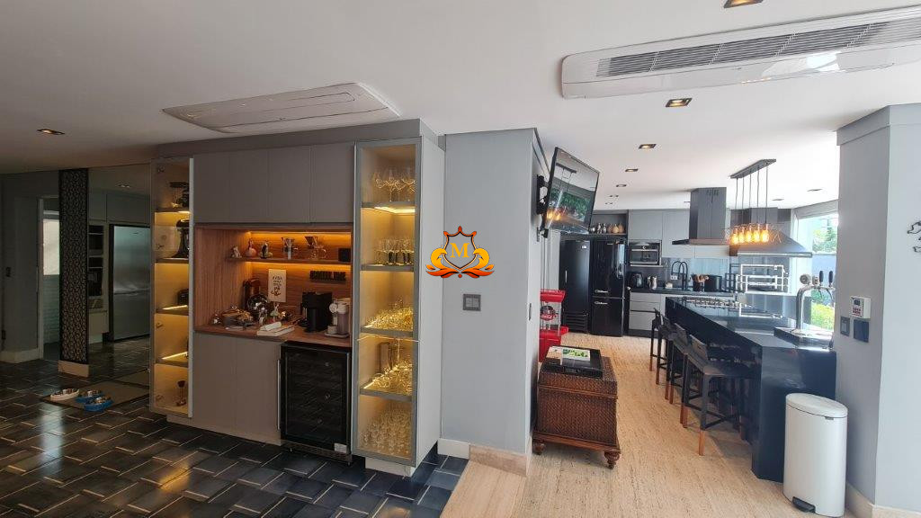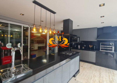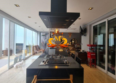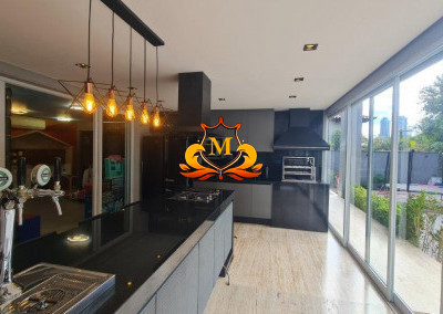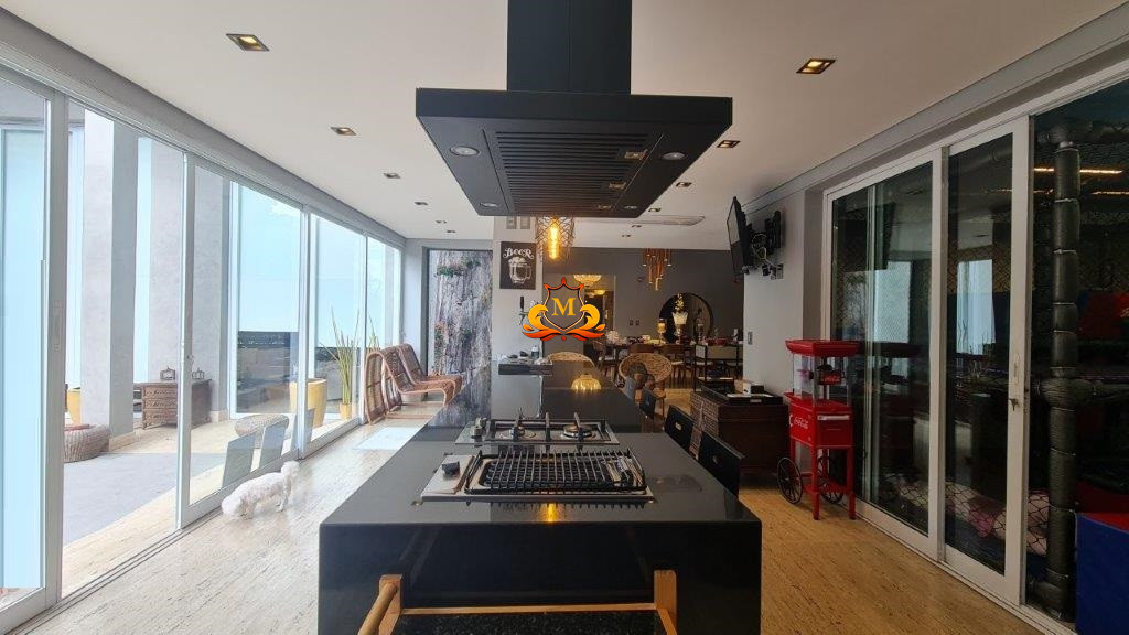 - Espaço Gourmet com vista para a piscina, equipado com churrasqueira de inox, chopeira, chapeira gourmet, fogão e forno,