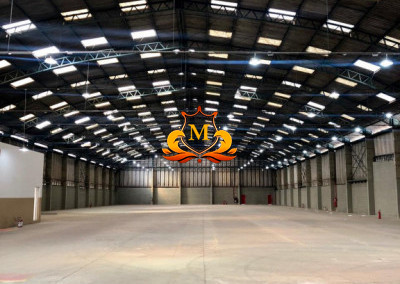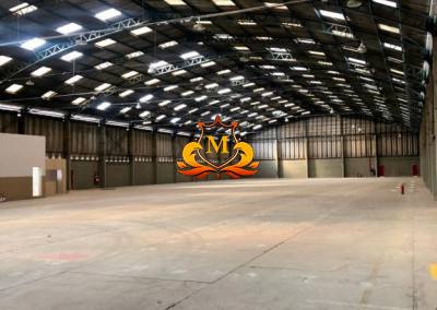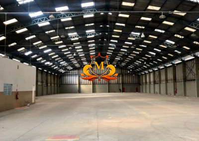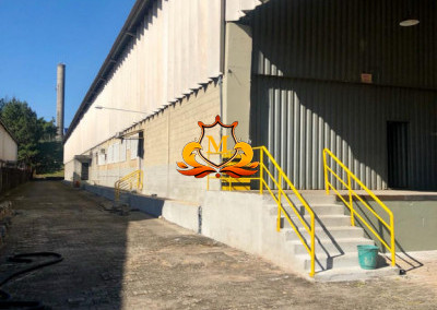 - Pé-direito: 8,20 m nas laterais, chegando a 14,00 m na parte central do galpão