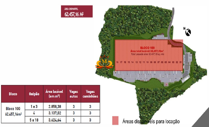 Áreas disponíveis para Locação: 62.457,16 m²