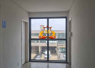 - Fachada em vidro refletivo azulado